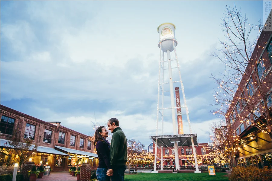 I was so excited when Kim and Matt decided to have their engagement session in downtown Durham! It has a great urban feel with lots of cool structures. The holiday lights and decorations were so pretty at night!